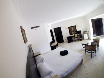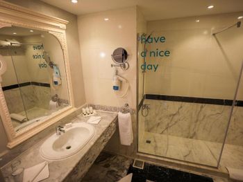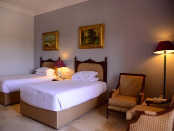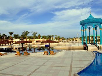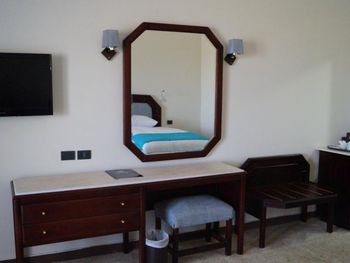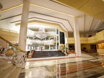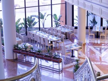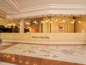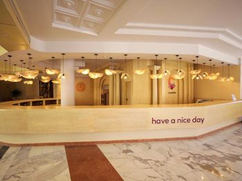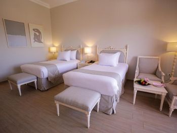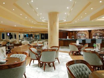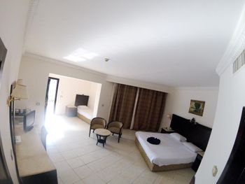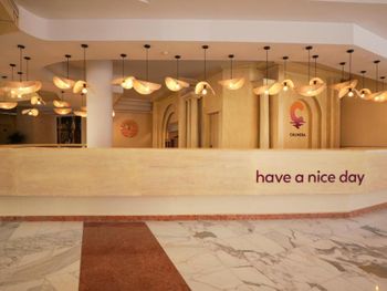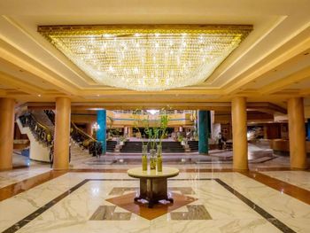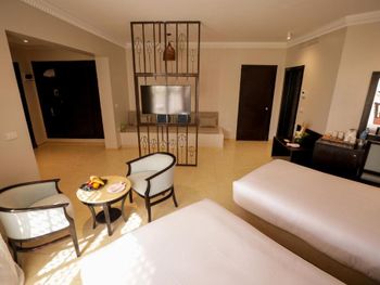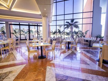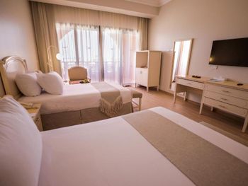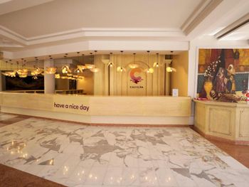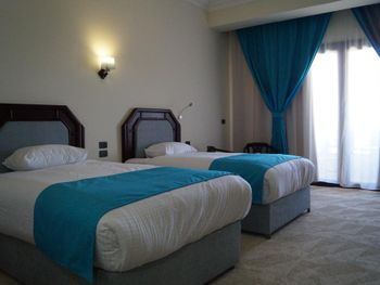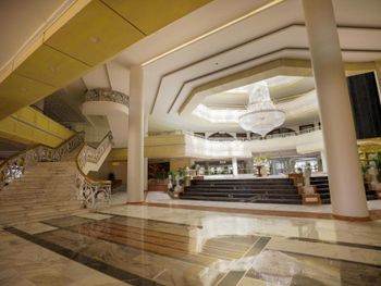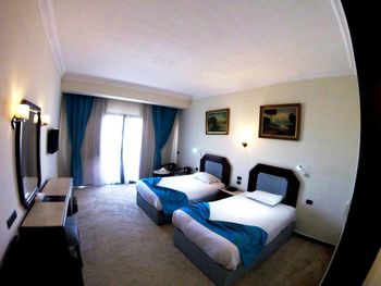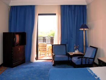 Персонал на ресепшене тебя игнорирует,даже если стоишь перед носом,то они либо уходят куда то,либо начинают говорить по телефону,при заезде чемоданы не забирают,ковры в каридорах грязные,номер грязный,все поломано,холодильник не работал,свет выключался. Номер большой,но нелепый,одеяло и подушки обосанные,на балконе грязь, вид из окна-это мусор! Почти вся территория развалина,бассейны грязные.