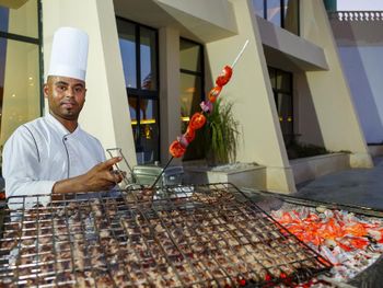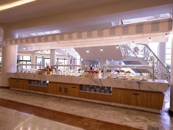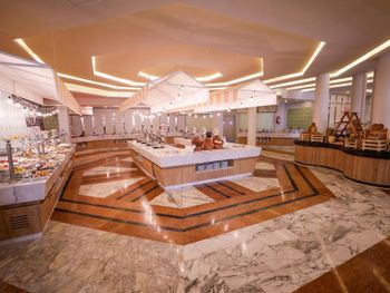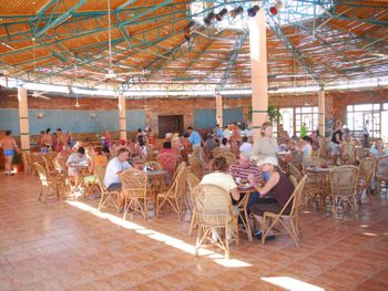Еда. Голодными не останетесь, но. Зелень иногда с песком. Емкость с супом ударила сильно током. Фрукты иногда пахнут будто их позавчера нарезали, а бананы будто собрались выкидывать, но решили выложить (потемневшие, полузрелые). Еда видно, что собрали из того, что есть и осталось после предыдущих разов, но красиво выложили, те же сосиски, салаты. Сладкое в баре на пляже едят воробьи. Сервировка столов страдает: вилки бывают с остатками еды, мы мыли в туалете, салфетки грязные. Официантов мало в зале, они зашиваются, из-за этого часто забирают еду, которую еще едят(просто сложно им), вода в бойлере еле теплая, стаканов нет и тп. О кофе-машине забудьте, офе только фильт, чай только из пакетиков. На завтрак за 40 минут до конца уже нет каши, и сколько ни проси пополнить, не пополняли. Супы - отдельная история, 80% пересолены так, что их просто не едят:) Хотя бывают очень вкусные и не пересоленые. Иногда на обед не было помидор. В общем вся еда на уровне супер-эконом класса.