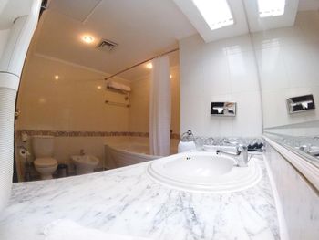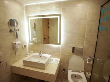 Отель не соответствует заявленным звездам, максимум 3☆☆☆. Очень грязно в отеле, по территории не убран строительный мусор, в номерах убираются плохо : выносят мусор , перетряхивают, перестилают постель и всё, и то не каждый день . Постельное белье, полотенца, скатерти и салфетки в ресторане всё старое, застиранное , в пятнах.... Про мягкую мебель на ресепшене и в баре на 2-ом эт.вообще молчу - жуть.