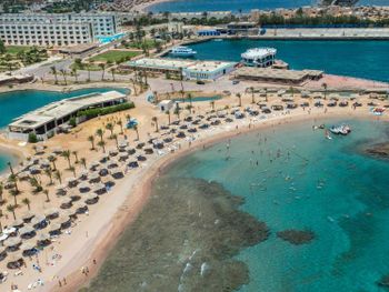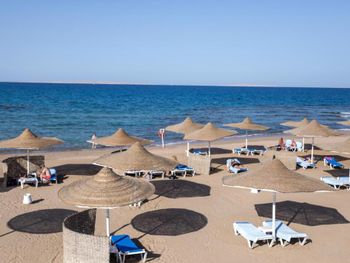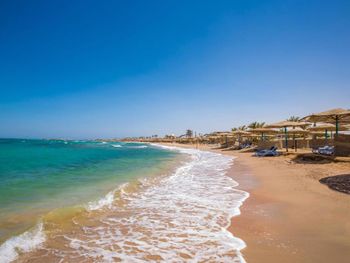 Сам пляж и море. Широкая песчанная полоса, можно без особых сложностей найти свободные шезлонги с зонтом, относительно свободно. Пляж убирают. Зайти в море можно почти с любого места, кораллы не мешают для купания детей. Глубина не большая, подходит для детей любого возраста. Вода чистая, очень солёная. Нырять с открытыми глазами, чтобы понаблюдать за рыбками возле находящихся рядом коралловых рифов рекомендую с очками или маской. Купить можно везде, в отеле, в городе в ближайшем крупном торговом центре Санза Молл.