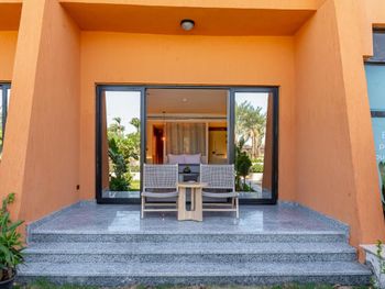 Для семейного отдыха это гораздо комфортнее, тише и уютнее вдали от арабских и других туристов, только одна соседняя комната через стенку, заметно больше площадь и более свежий ремонт и общее состояние. Кроме того, ближе добираться до пляжа и аквапарка, т.к. территория отеля очень большая мы шли с ребёнком 5 лет около 7-10 минут до пляжа от домика, а от главного корпуса ещё минут на 5 дольше. В Российских условиях тут ничего особенного нет, но при египетском солнце и температуре 36 и выше эти минуты в пути кажутся очень долгими.
