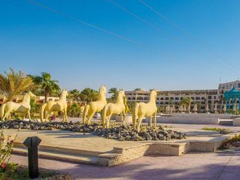 Раньше 5 коней были золотыми 😁 а сейчас их покрасили в разные цвета и это смотрится не очень гармонично с концепцией отеля . Была в этом отеле 15 лет назад