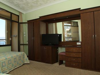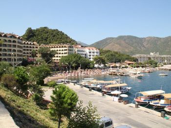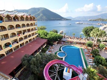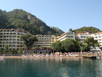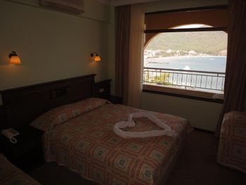 Мы были удивлены , что при заселении нам объявили , что кондиционер платный по 6 евро в сутки, это конечно нонсонс, мы много путешествуем и не особо придирчивые туристы, но когда услышали про платный кондей, то не много огорчились! Ну, я считаю лучше не много поднять цену за номер и сделать его бесплатным 🤭! Номера , да как и писали ранее , старенькие и мебель не новая , но мы ехали именно на отдых и море, и понимали, что нам это не принципиально! Номера все одинаковые , маленькие, но в принципе вся Европа такая, хотя мы были в Турции , но она сравнивается с Европой , эта совершенно другая Турция ( Мармарис) , чем Анталия , Алания ! Район очень понравился , чистая , уютная маленькая деревня ! Я рекомендую этот отель , для спокойного , тихого отдыха! Сезон конец августа самое то, что надо ! Вода тёплая, чистая как слеза ! Много в этот период местных , они отдыхают с детьми , но не напряжно ! Лежаки занимали в 7 утра , сезон как ни крути 😁! По еде, все вполне👍! Но, лучше брать только завтраки! Рядом много ресторанов и кафе по приемлемым ценам и порции хорошие !