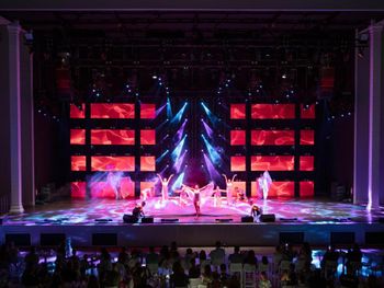 3. Крайне слабая анимация. Дорогое оборудование, сопровождающее шоу, но содержание было так себе. Приходится сидеть на высоких неудобных стульях и ждать 1-1,5 часа начало шоу. Мини-диско внизу сцены и как-то не впечатлило.
