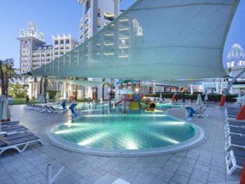 В отеле Granada Luxury Belek работают разнообразные уникальные объекты, созданные специально для детей, в том числе 2 мини-клуба для детей в возрасте от 4 до 12 лет и парк аттракционов. В парке развлечений «Страна чудес» гостей ждут аквапарки и аттракционы, а на горки можно подняться на лифте.