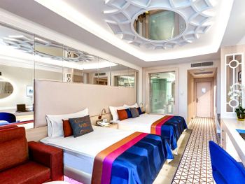 Все номера отеля Granada Luxury Belek оснащены кондиционером и телевизором. В числе удобств сейф и мини-бар. На балконе можно отдохнуть под освежающим бризом со Средиземного моря. В собственной ванной комнате установлен душ.