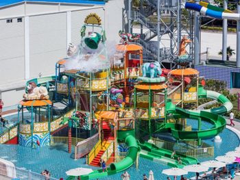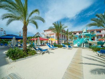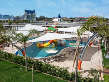 Отличный аквапарк, с лифтом на 4й этаж, не нужно подниматься пешком. Отличная экономия времени. Разные зоны с белым песком у бассейна, детям нравится там играть.