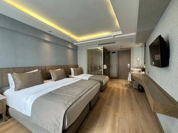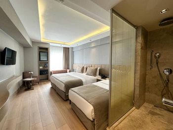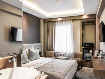 Также буквально в паре минут от отеля Grand Beyazit Old City находятся Египетский базар и трамвайная остановка Beyazit. По утрам для гостей накрывают завтрак «шведский стол». Комфортабельные номера располагают к приятному отдыху; в числе стандартных удобств — кондиционер, мини-бар, сейф, гостиный уголок и телевизор со спутниковыми каналами. На всей территории доступен бесплатный Wi-Fi.
