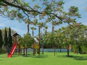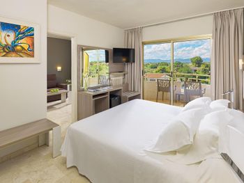 The pools are set within gardens and are surrounded by a sun terrace with loungers. Free sporting activities include basketball, football and archery.