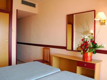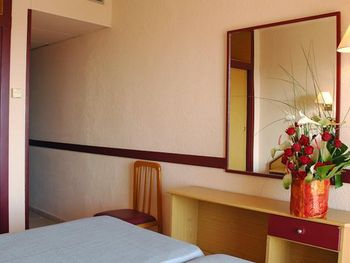 Первое - слышимость ужасная в номерах, мы постоянно не высыпались, поскольку слышно любой шорох, а молодежи в отеле прилично, поэтому был не шорох, а крик. 2 - в шкафах и тумбах нет дверей! Все вещи на виду и для уборщицы и для нас. 3- впервые вижу, что в номере нет даже маленького столика, не то что комода под зеркалом. Ребёнку надо было учить уроки, а тут такое. И снова таки, возвратимся к персоналу, он помог решить даную проблему и стол принесли в номер.