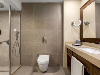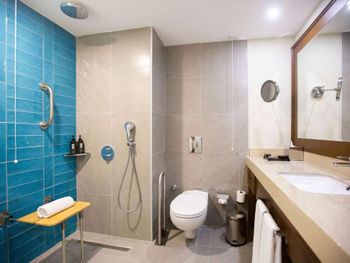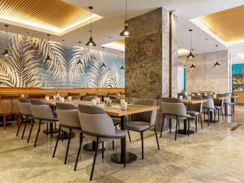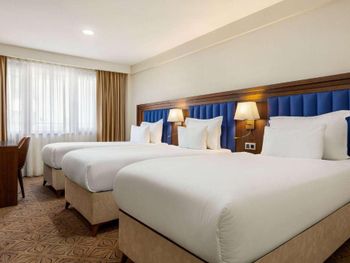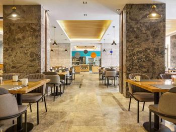 Очень жаль что такой бренд как Рамада опустилась до уровня хостела. До заезда - значит у отеля 5☆ паркинга нету к отелю не проехать. На ресепшине столпотворение. Дали на троих такой маленький номер что невозможно было двоим нормально передвигаться. Один должен находиться на кровати. Завтрак просто ужас во первых все некачественное, кроме того столпотворение, мест нет, даже у апаратов чая и кофе очередь от 10 человек, доходит очередь кружек нет вообщем ушел и позавтракал в другом месте. В ванной комнате (133) душ сломан брызги на все стороны кроме тела. Одним словом все ужасно, для меня бренда Рамада после этого не существует.