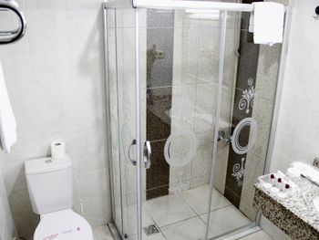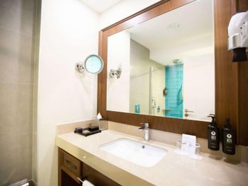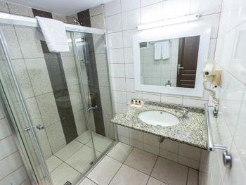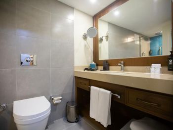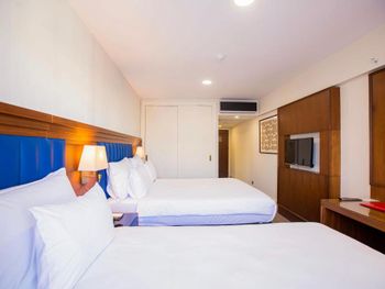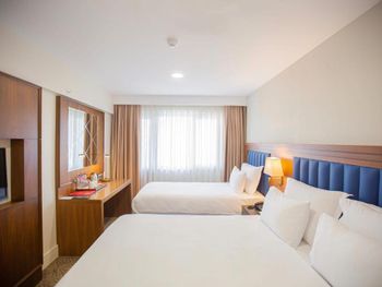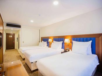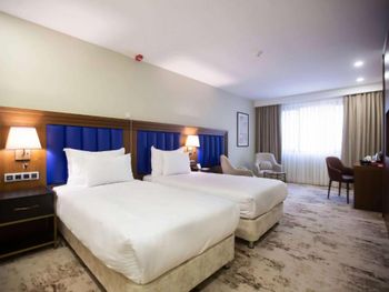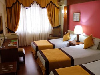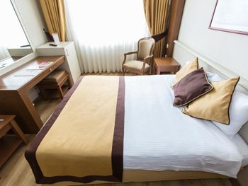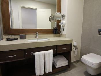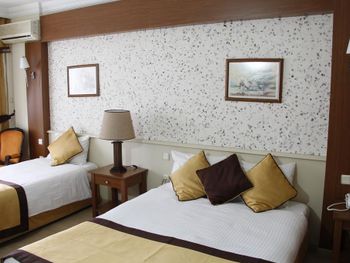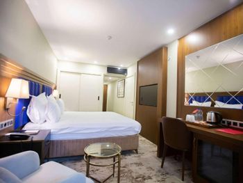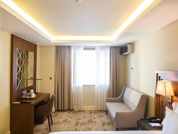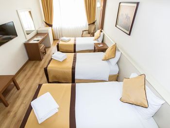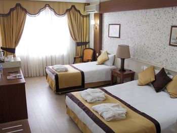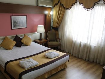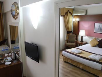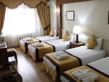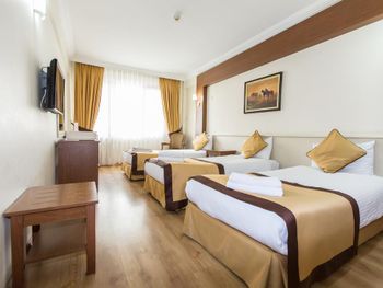Отель класса эконом, скромные 3 звезды, не больше. Удивило самомнение владельцев отеля, которые оценили себя в 5 звёзд. Жили 2 ночи в семейном номере. При бронировании оказалось, что завтрак не включён. На ресепшн сказали: «…у нас завтрак дорогой, по $15/чел, лучше Вы за намного меньшие деньги позавтракаете в кафе». Так и сделали. Номер очень маленький, кондиционер LG был запрограммирован на минимальную температуру 23, работал шумно. Ещё была выведена приточная вентиляция, большая решетка над входом, ее включал и выключал сам отель, тоже очень шумная. Спали с открытым окном. Рядом мечеть, в 5 утра начинал меть муэдзин, просыпались от этого. В номере очень тесно, только чтобы прийти поспать, так как места почти не было разложить чемодан. Санузел очень давно без ремонта. Дверь в душ была перекошена, через неё заливался пол. Унитаз был так высоко установлен, что при моем росте 174 см у меня ноги не доставали пола. По утрам с 9.00 все 2 дня выключали воду. Везло только тем, кто успевал сходить в туалет и умыться раньше этого. Включали воду потом только в районе 10.30-11.00, после чего она текла ржавая. Вода из душа даже вечером текла с очень слабым напором. Постель неудобная. Матрасы жесткие, как-будто надувные, ходуном ходили, когда переворачиваешься на бок. Такие же жесткие и туго-набитые подушки в 2 размерах. Даже с меньшей подушкой я проснулась утром с болью в шее. Халатов и зубных щёток не дают.