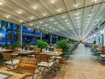 Вечерняя программа - дискотека, цирк, концерт. На террасе живая музыка, караоке.