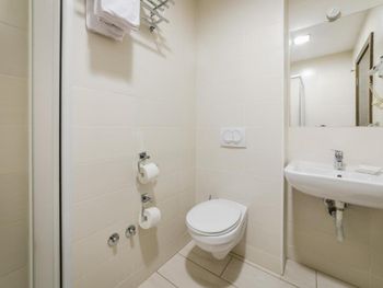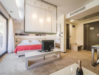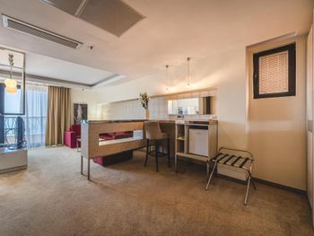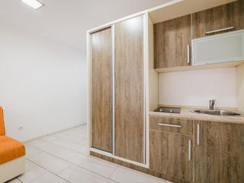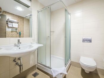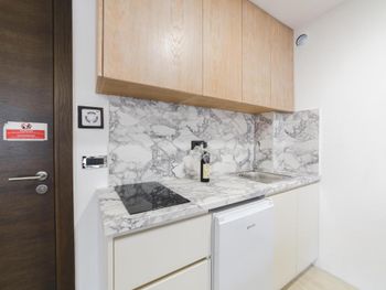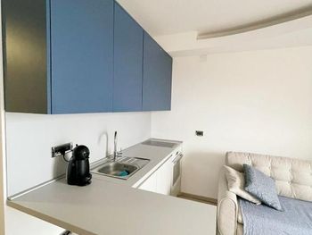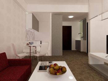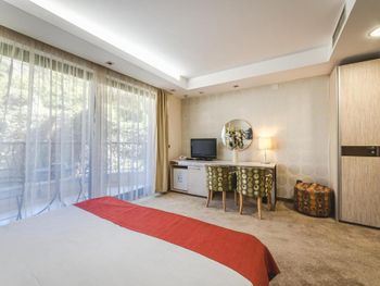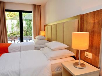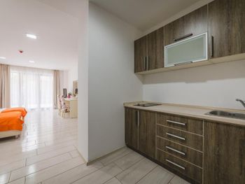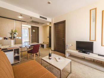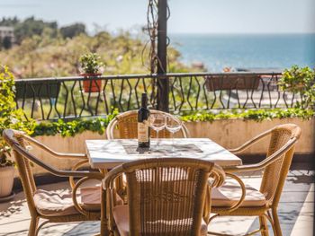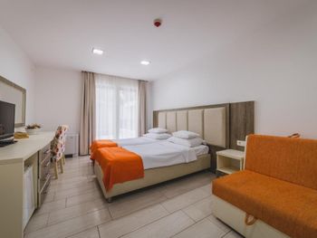 Кондиционер поставлял в номер тепло и запах сигарет. В жару +33 это ад. Постояльцы курят прямо на балконах. Душевая кабина печальная. В холлах ковролин старый и в пятнах. Нам достался номер под названием "полулюкс" (так на русском языке), на самом деле это скорее эконом-апартаменты с кухней. Если вы хотите номер с видом на море, то надо учитывать, что также это будет вид на довольно оживленную дорогу и парковку. Если в тех "видовых" номерах такая же проблема с кондиционером, то в жару там будет еще хуже. Туда же, на дорогу и паркинг, выходит и терраса ресторана. Не все водители понимают, что неплохо бы заглушить двигатель, пока ждешь пассажиров.