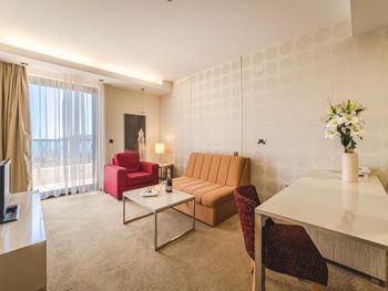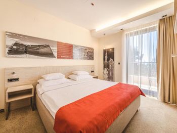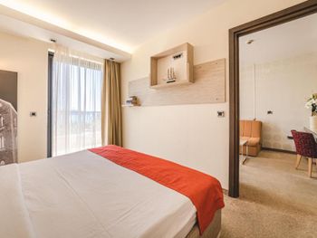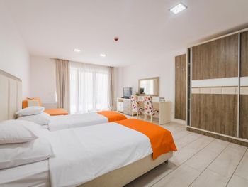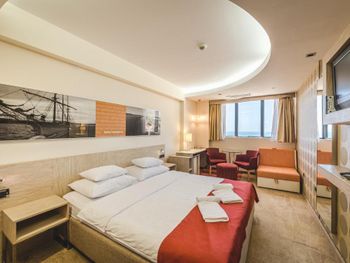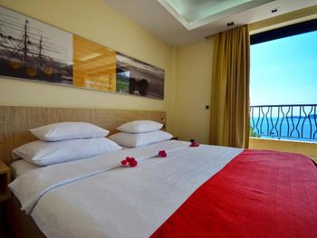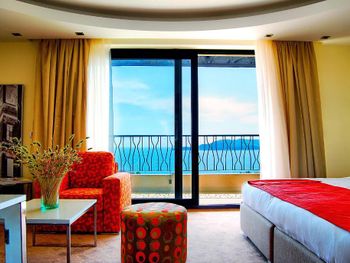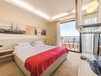Огромное спасибо девочке на ресепшн, по моей просьбе переселила в честь Дня рождения В номер с видом на море,. Персонал замечательный. Номер огромный, если брать 2,3 этаж будет прекрасный вид на море в районе Пляжа Пржно. Если вы на машине, жить в отеле достаточно удобно, парковка подземная отличная, машина в тени Лифт прям из паркинга на этаж.В номерах чисто. До моря пешком минут 7-10, но лестница достаточно крутая, особенно на подъём. Завтрак достаточно хороший.