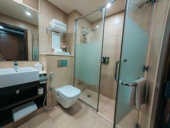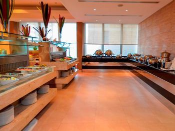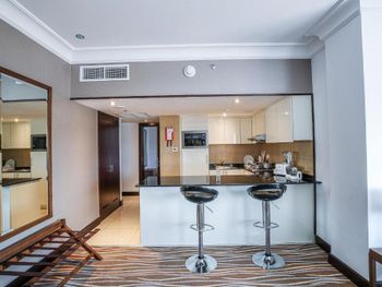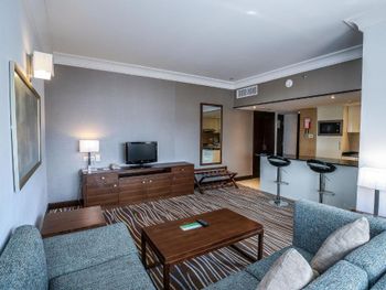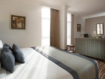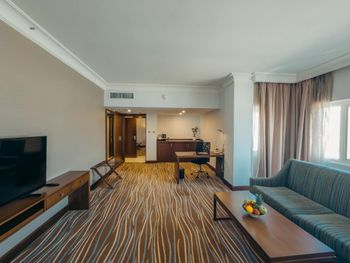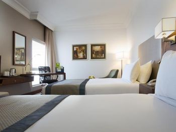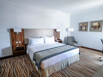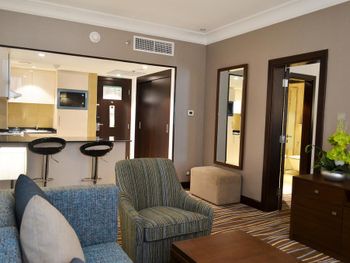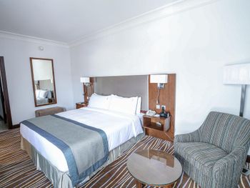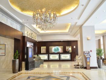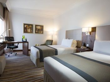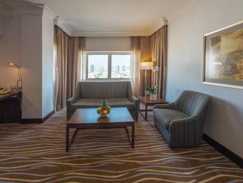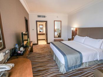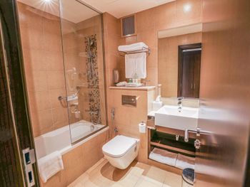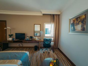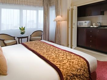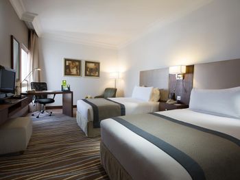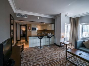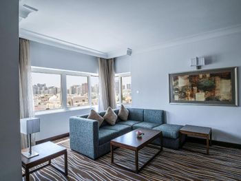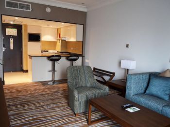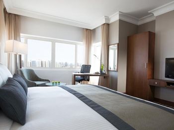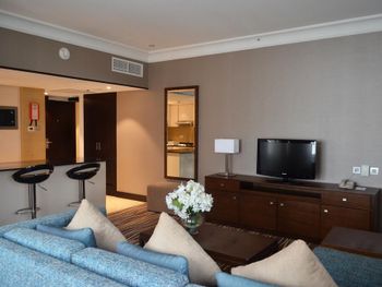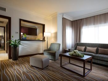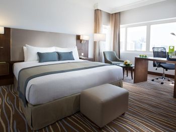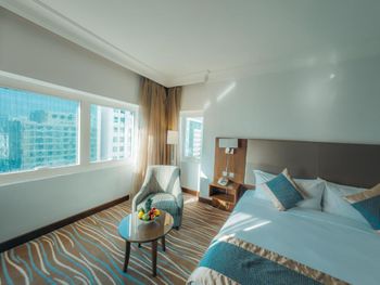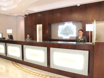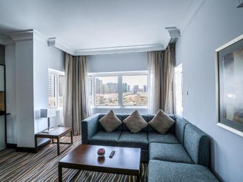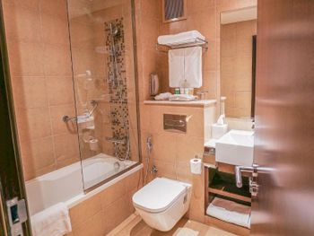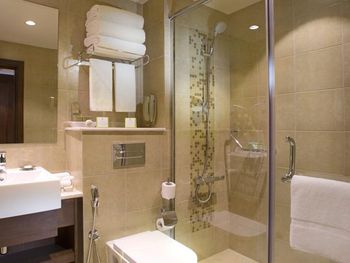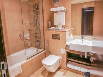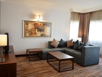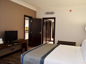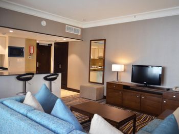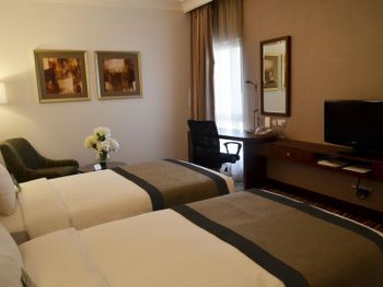 При регистрации ресепшионист (девушка) сказала, что сейчас нет номеров для курящих, поэтому она нам сделает "апгрейд", только надо подождать 40 минут. Погуляв час мы пришли на стойку, где нам вручили ключи от комнаты 1622 (последний этаж) заверив нас, что там 2 кровати кинг сайз (невнятно) и типа вообще без доплаты... Доехав до этого "пентхауса" предвкушая возможно апгрейд до suite мы честно говоря офигели. Протиснувшись по коридору в каморку не больше 18м2 с двумя короткими обычными twin кроватями. Прокуренную и с маленьким окном. К слову сказать в этом отеле все номера с малюсенькими окнами. А кровати все короткие. Немного придя в себя от подобной наглости, мы позвонили на ресепшн и потребовали сменить room. Та же девушка сказала, что у нее нет курящих номеров, рассчитывая что мы согласимся, но мы сказали давайте некурящий. Через 15 минут пришел портье и принес ключ от номера 1523, который оказался и smoking (соврала) и bigger (обычные 23м2) и с king size кроватью (впрочем она тоже была короткая по длине). Окно маленькое. Отель старый, номера прокуренные. Бассейн ни о чем. Не рекомендую, с подобным наглым обманом я встречаюсь впервые в Абу-Даби. 2 ночи проведенные в этом номере я вспоминаю с ужасом. Номер депрессивный. Соседи притащили шармут и гудели всю ночь. Не ожидал такогого сервиса от этой сети. Первый и последний раз! А, еще и уборщик нагло намекал на чаевые за уборку. В целом это шок.