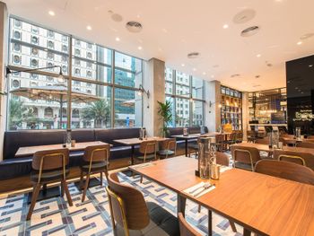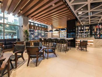 Понравился персонал на ресепшене, приехала в отель в 9 утра, разрешили до заселения пойти в бассейн и сауну, там тоже очень приятный молодой человек дал полотенце, все показал, бассейн маленький на крыше. Номер дали в 11.00, хотя заселение по правилам в 15.00. Еще внизу есть ресторан в современном стиле.
