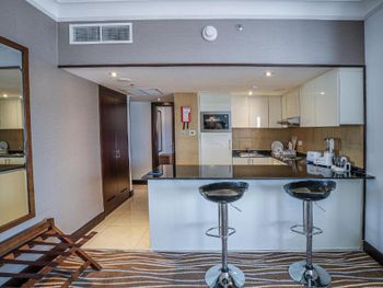 В номере не работали розетки в месте где располагалась кухня . Перед заселением видимо нам о отключили розетки чтоб мы не пользовались холодильником и микроволновой печью ! Так как в первый день в холодильнике еще был лед ,который растаял в течении двух часов значит холодильник выключили прям перед нашим заселением!!! Микроволновку и лично снял с полки и перенес к другим розеткам ! В общем отель как и персонал ужасный !!! Если вы только пьете и крепко спите можете там остановится на пару дней , а если планируете там отдыхать - достаточно зайти нассать им на ресепшен и уйти