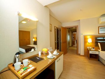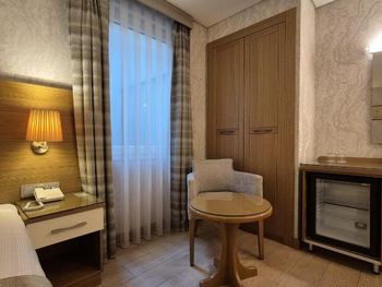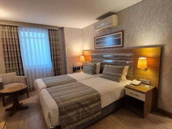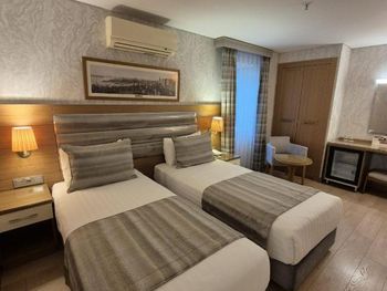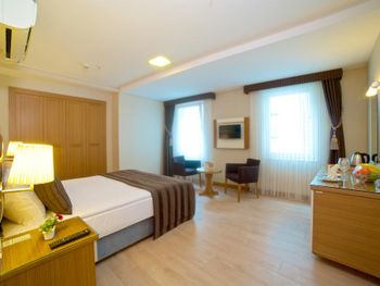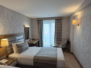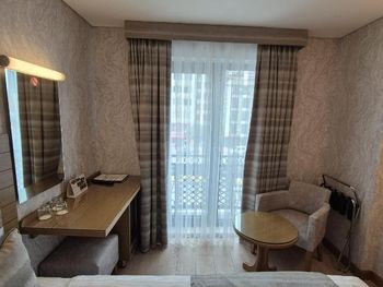 Отель очень понравился. Летом открытый бассейн - супер! После пеших прогулок или перелета снять усталость. Единственное, за что сняла бал, персоналу бы почаще туда подниматься, что бы следить за порядком. Отдыхающие оставляют вещи (полотенца, тапочки) и все это валяется целый день и летает по крыше (ветер на крыше сильный). А также много птиц, хорошо было бы хоть 3 раза в день протирать там полы. И дно у бассейна грязное песок, но он в городе, тяжело наверно с этим бороться. Вообщем я плавала, последствий плохих не было)) Завтраки вкусные - для меня это самое главное! Голодным не останешься. Персонал замечательный, абсолютно все: помогут, подскажут, просьбы исполняют. До центра 20-30 мин пешком неспеша. Рядом остановка трамвая Аксалар. Удобно добираться от аэропорта на автобусе хаваист. Мы остались очень довольны выходными! Этот отель можно рекомендовать друзьям!