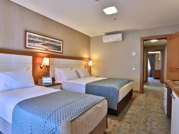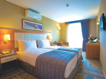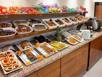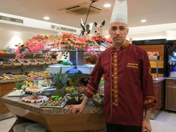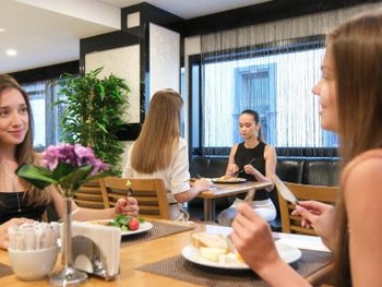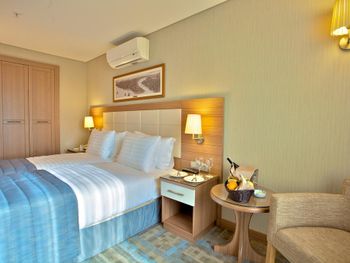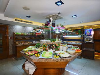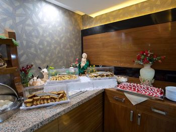 В отеле работает модный ресторан, где подают вкусные блюда турецкой кухни. По утрам для гостей сервируют завтрак «шведский стол» с разнообразными блюдами турецкой кухни.