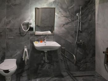 Нет русскоязычных каналов телевидения, средства гигиены не полностью в наличии,нет зубных щеток и пасты,шапочек доя волос