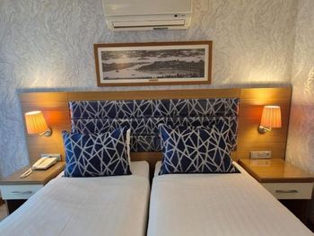 Это самый ужасный отель из которых мне доводилось побывать. Фотографии отеля и комнат совсем не соответствуют. Я забронировала номер по фотографии-большой и просторный но по факту это оказалась маленькая комната. Оказывается такого номера как на фото при бронировании у них нет.Это обман-рекламный ход. Персонал заранее не предупредил что в отеле идет ремонт зато написали стоимость трансфера из аэропорта в отель,про это они не забыли, про ремонт узнала когда заселилась, у меня был невозвратный тариф, поэтому от брони уже не могла отказаться. Мне бы не вернули деньги. В итоге за 607€ мне пришлось слушать 8 дней работу перфоратора и дрели. В связи с этим мне меняли номер 3 раза.Отпуск был испорчен. В целом отель очень ветхий и старый. Бассейн на крыше несколько дней был закрыт. Второй бассейн на нулевом этаже не пригоден для использования потому что там очень холодная вода, 18 градусов. Отель 4 звезды, но он еле дотягивает до 2 звезд. В номерах нет: электрического чайника, кружек для чая, воды, стаканов, одеяла(хотя в описании букинг это все указано).Был тонкий плед. Прачечной нет. Утюг не дали. Шведский стол был скудный и каждый день одинаковый (омлет,салаты,сладкое). Мясных блюд небыло совсем. Тренажерного зала как в описании нет. Он отсутствует. Персонал на мои просьбы реагировал очень неохотно, все приходилось прям выпрашивать. Видно что тут устали от гостей и посетителям не рады. Повелась на хорошие отзывы но в реале очень разочаровалась. Отзывы не соответвуют либо заказные. Кто таким отелям дает звезды? Они сами себе их рисуют? Сожалею что не забронировала квартиру и выбрала этот отель по фотографиям и отзывам, отдых был полностью испорчен. Рекомендую выбирать другие места для проживания.