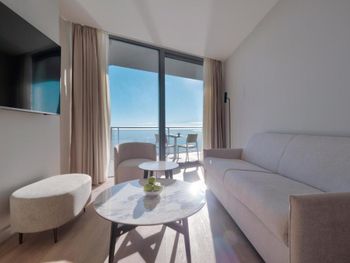 Расположение отеля очень удобное на первой линии, пляж хорошо оборудован лежаками, зонтами, полотенца выдают с 8 утра по отельным карточкам, ребята на пляже внимательные и приветливые! Завтраки разнообразные. Уборка номера ежедневная и смена полотенец тоже. Сам номер на 7 этаже с балконом и частичным видом на море, что было плюсом, так как шум ночных баров почти не доходил до меня! Сам номер очень большой и комфортный, разделен на пять зон: прихожая, туалет, душевая комната, гостиная со шкафами и непосредственно спальня. Очень удобно!
