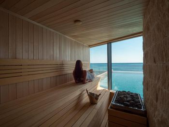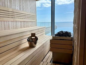 Замечательное местоположение. Прекрасный завтрак. Свой пляж, где всегда есть места. Чудесный вид с террасы. Маленький, но не переполненный людьми СПА.