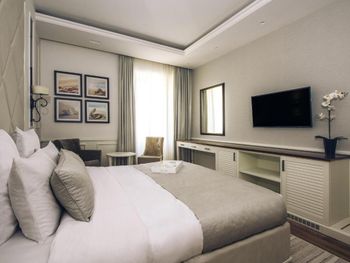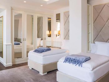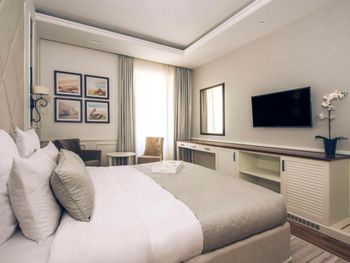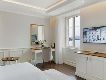 В номере нет балкона, при этом не подключено отопление, не работает полотенцесушитель (работает только зимой), не возможно высушить вещи после пляжа.Администраторы предложили сдавать вещи в платную сушку.В номере нет ложечки для обувания.Отсутствует любая информация на русском языке.Один из менеджеров отеля пообещал перевести все основную информацию отеля на русский язык , но так и не выполнил своё обещание.В номере есть сейф , но без посторонней помощи вы никогда не сможете разобраться как им пользоваться!Из оборудования Фитнес центра есть беговая дорожка, элипс и велотренажер, 3 коврика .И это всё!!!Нет ни единой гантели, нет перекладины...Ничего нет..Зато есть бассейн!На минус третьем этаже!Без окон и дверей.Находиться там крайне некомфортно..Еще будьте готовы к тому что что зона для плавания в море всего 20 метров ...Дальше буйки а за буйками постоянно курсируют и паркуются лодки , катера,яхты.На воде много разводов от топлива , особенно вечером.В отеле нет бесплатной воды, кроме 0,33 на room service.