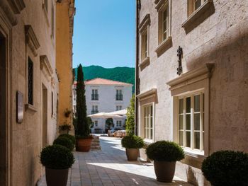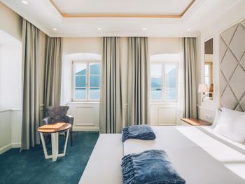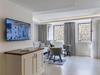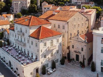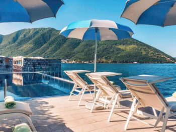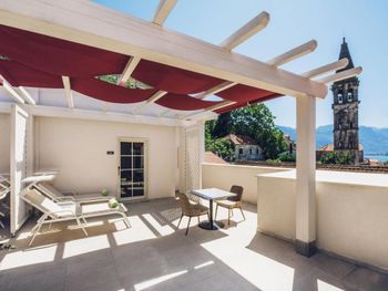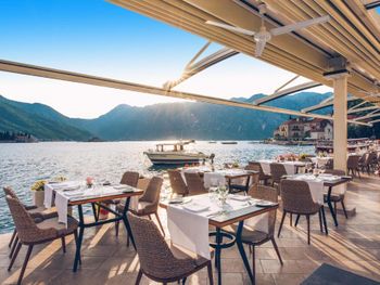 Понравилось месторасположение отеля - очень живописное место. Это единственный отель в Перасте, где оборудована своя пляжная зона.