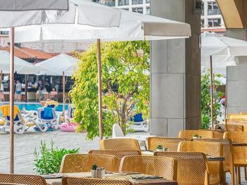 территория отеля состоит из трёх восьмиэтажных строений которые окружают три больших бассейна и два детских бассейна . территории практически нет , зелени нет. Для резервации шезлонга возле бассейна нужно проснуться в 6-30 утра ,.