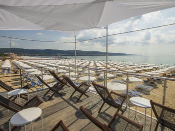 -шезлонги на пляже находятся далеко от моря, возле моря оплата отдельно 15 евро за зонтик и 2 шезлонга