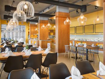 После 6 сентября закрывают ресторан в одном блоке и огромные кучи народа в двух остальных ресторанах, при чем об этом нигде не написано, чтобы сесть нужно вечно искать стол.