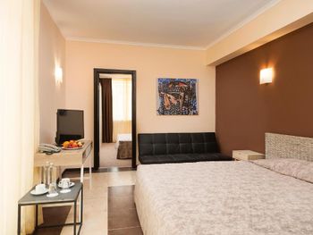Бронировала отель еще осенью, полулюкс. Должно было быть: двуспальная кровать+ односпальная кровать + диван, на полу - ковролин. В результате получили одну кровать и раскладной диван, на полу - кафель. Разнополые дети спали вдвоем на диване и днем играли на кафеле. Мало похоже на полулюкс. Зачем тогда подтверждать бронь, если заявленного номера нет?