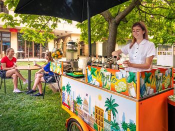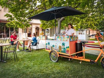 -ужасная парковка, которая находится под деревьями лип, без асфальта . В последний день сотрудник отеля поцарапал нам машину сухими ветками. При этом за парковку мы заплатила 110 евро