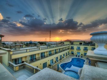 Шикарная архитектура!!! Рядом с отелем в итальянском стиле торговый центр для прогулок. Очень удобно ездить на море, совсем не напряжно, отличный песчаный пляж, при желании можно пройти по берегу дальше на выход из бухты и понырять с рыбками на рифе. Можно с пляжа сразу пойти гулять в старый город. Обратно до отеля дойти из старого города 25 минут через огороды (через гору). Еда вкусная, много тушёных овощей и зелени со свежими овощами.