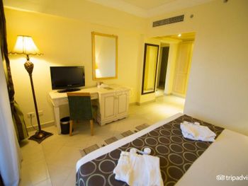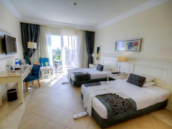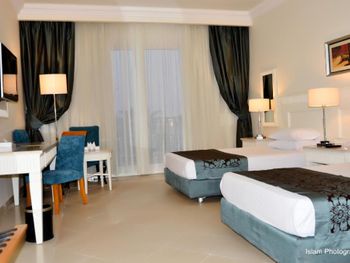 В номере грязно, пол моют очень плохо. Постельное требует замены. Уборщика постоянно приходилось искать, то бумагу не положит, то шампунь. Рылись в холодильнике, недостачу шоколадок обнаружили. Тапок, халатов нет. Море: Бесплатный пляж песчанный Терразина, 1 маленькая бесплатная бутылка воды, остальное все платно и дорого, на баре на пляже пытались обмануть нас. Пляж Фанар - 5 $ с человека за посещение. Что не выгодно при покупке все включено . Столовая: Большого выбота блюд нет, морепродукты через день. На 1 персону 2 креветки( соки разводные, фрукты нормальные. Выпечка и сладкое - тяжесть в животе от нее.