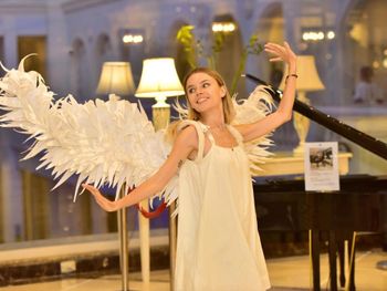 В холле стоит рояль, но играть на нём нельзя постояльцам, очень обидно)