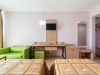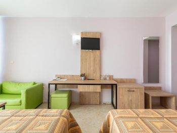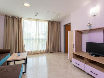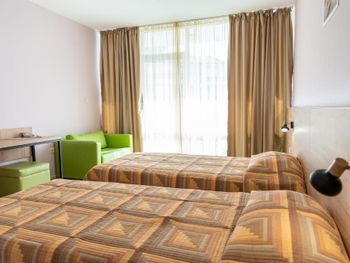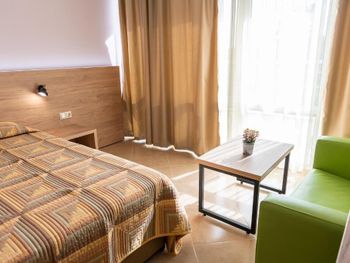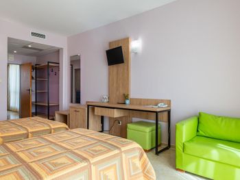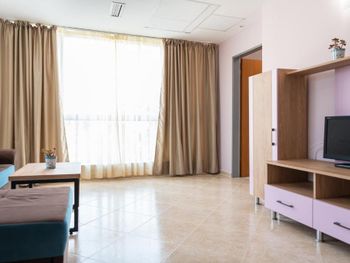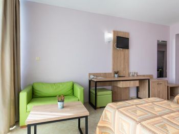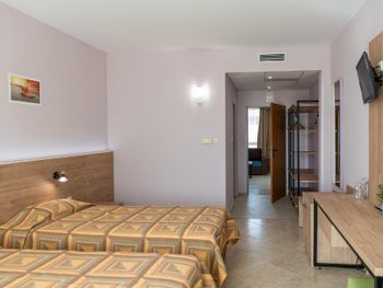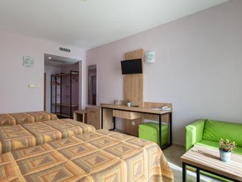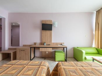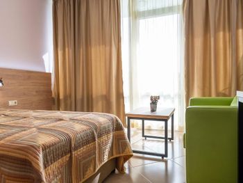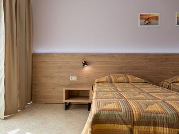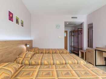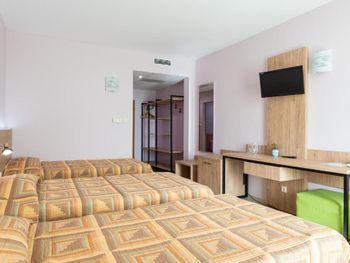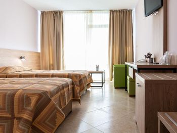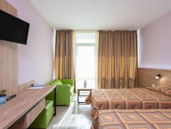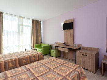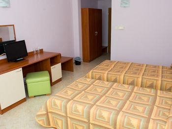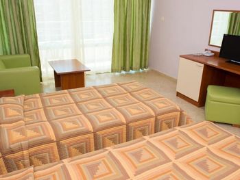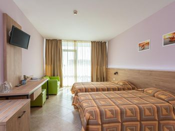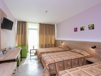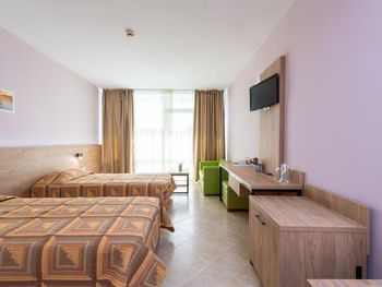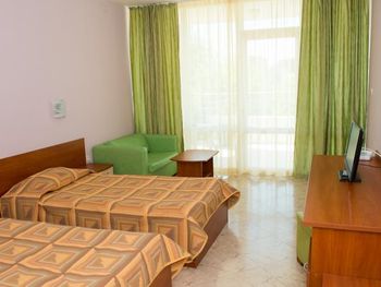 А вот больше минусов долеко от прогулочного берега автобусы раз в пол часа. По ночам очень шумно в низу крики бесполезно прасить о тишине персонал не реагирует из за этого не высыпались кондиционер работает очень плохо нас было трое заплатила за троих а полотенца давали только на 2их и все время приходилось просить ещё кравать не разу за все время не заправляли так выравнили одеяла и то так что лучше бы этого вообще не делали честно очень разочарована первый раз в болгарии и отпуск был на смарку ожидала от 4х звёздочек лучше а получается как 3 звёзды .