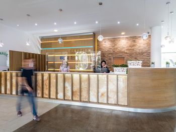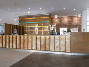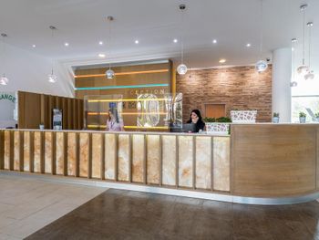 Персонал на ресепшн помогает, персонал на завтраке приветливые, стараются. Сытный завтрак шведский стол. Вкусно. Уютное лобби, территория у бассейна. Магазинчик в отеле, очень удобно. Стойка ресепшн 24 часа. Огромный номер, удобная кровать и белоснежное белье. В ванной мыло и гель .
