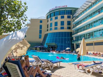 В отеле Ivana Palace, расположенном в западной части курорта Солнечный Берег, в 300 метрах от пляжа, к услугам гостей уютные и стильные двухместные номера, одноместные номера и апартаменты.