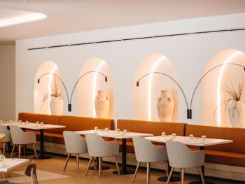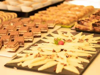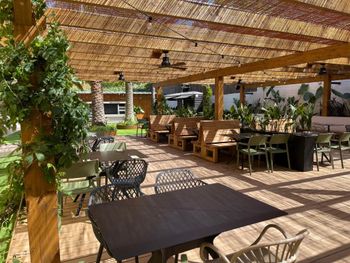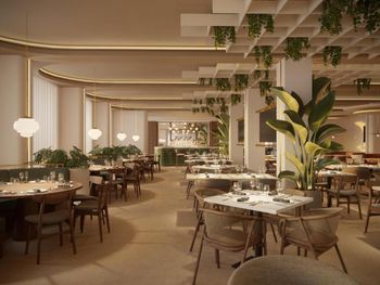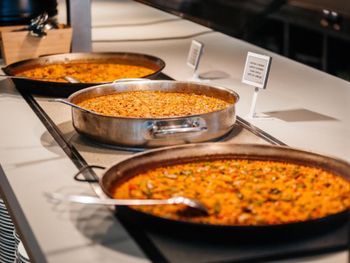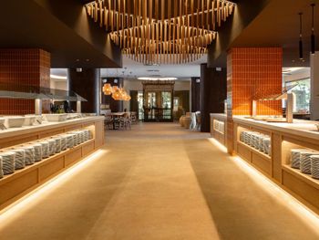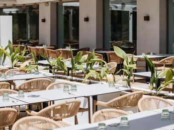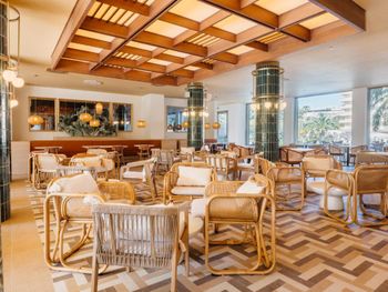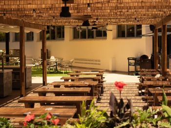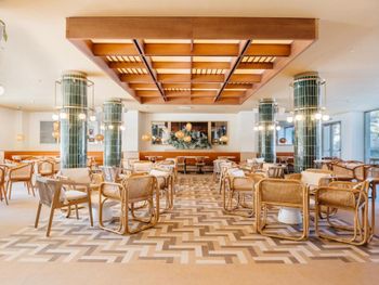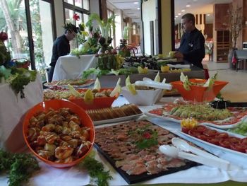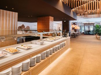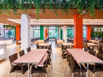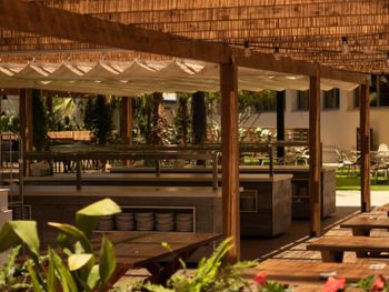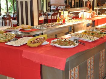 В ресторане с обслуживанием по системе «шведский стол» готовят блюда интернациональной кухни. На территории работает несколько баров, в том числе бар у бассейна, где подают закуски и напитки.