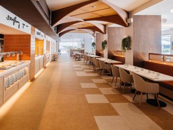Столовая 1 из 3 без кондиционера, невозможно дышать и есть, в коридорах тоже нет конциционеров, в холле тоже, в лифте вообще смерть
