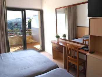 Парковая местная и то которая платная занята была, хотели отменить бронь из за этого не получилось, пришлось парковаться на городскую за 27,7€ за сутки , отель большой но запущен очень , пожалели что оплатили завтраки- ужасные:омлет горький и без соли , кофе как помои а за дополнительную оплату в баре на терассе пожалуйста но за деньги, сок апельсиновый""" вода прозрачная белого цвета , в номере смерд стоит, ключи не всегда срабатывают!!!!!! Розетки 2 шт в 3х местном номере, а всех телефоны и гаджеты !!!! Полотенца с пятнами !!!! Очень дорого за такую грязь 217€ +27,7 парковка. Не рекомендую!!!!