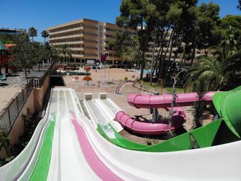 В аквапарк иногда не пускали детей, хоть горки и не опасные, стоит ограничение на 120 см. Это очень огорчало мелких детей. 5-7 лет. не пускали даже с родителями.