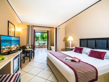 Главный минус - ресторан, который разочаровал и ассортиментом, и качеством блюд: мало фруктов, непропеченная выпечка, десерты однообразные, гриль пересушенный, часто блюда пересоленные, одинаковые и невкусные завтраки. В ресторане очень много людей, мест иногда не хватало, шумно, и громко играет музыка. Номер «уставший», кондиционер громкий и охлаждал в основном прихожую, а не саму комнату. Навязывание услуг на пляже