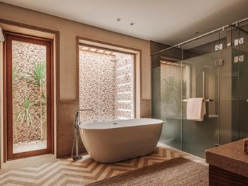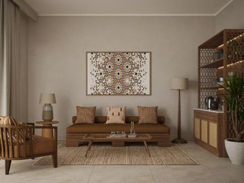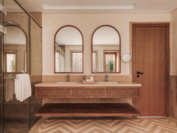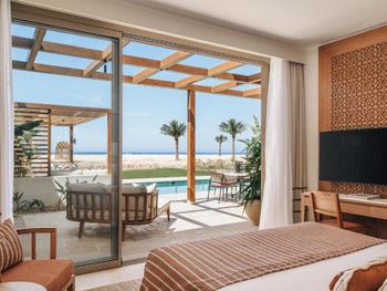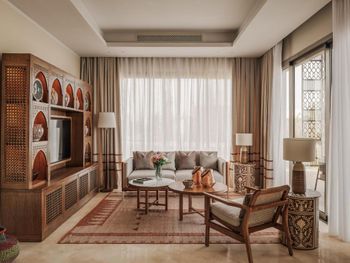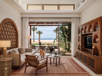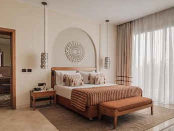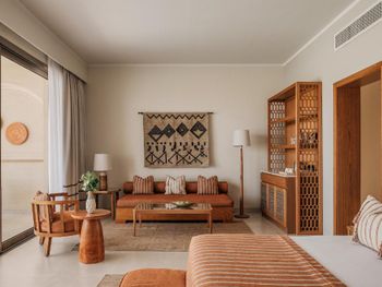 В Sakhra Hotel & Spa, Almaza Bay в номерах есть гостиная зона и собственная ванная комната с душем и бесплатными туалетно-косметическими принадлежностями. Также в распоряжении гостей телевизор с плоским экраном со спутниковыми каналами. В собственной ванной комнате есть фен. В распоряжении всех гостей письменный стол и чайник.