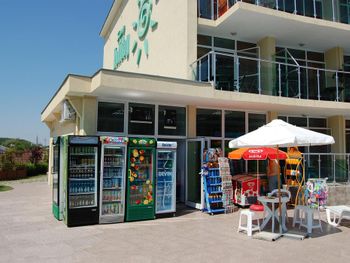 На территории отеля магазинчик, брали там кофе приятно посидеть рядом с бассейном . Территория чистая, тихая! Не далеко магазин Janet, постоянно ходили до него за продуктами, рядом Aldo дорого! Отдыхали 20 дней с03.09-23.09 , скажу одно после 14 сентября все закрывают, магазины аптеки аквапарки прилавки и тд, сезон заканчивается, поэтому после 15 сентября делать здесь нечего, единственный и очень приятный плюс народу на пляже никого свободно приятно !!!!!