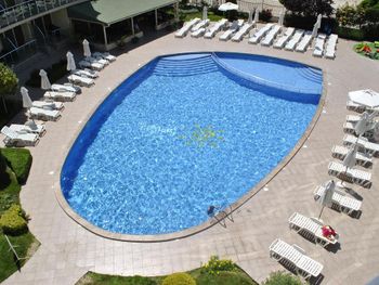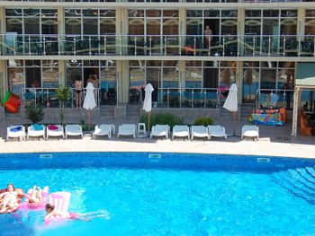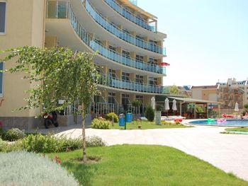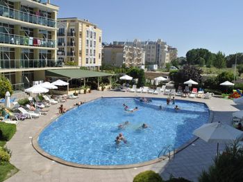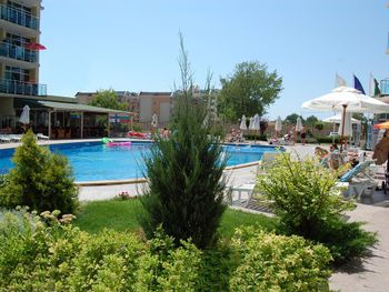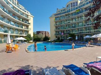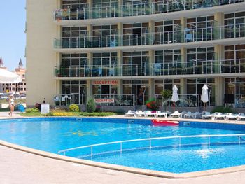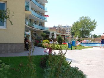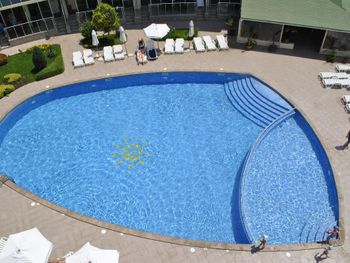 Низкая цена, просторный номер, приятный персонал. Автобусные остановки рядом. До Нессебра три остановки, до центра Солнечного берега - пять. Пешком идти далековато. В минутах 15 ходьбы хороший супермаркет. Бассейн чистый, но холодный, даже детский лягушатничек прохладный. Посуда и мебель вся есть, хотя и очччень поношенная. Больше сюда не поедем, потому что ну слишком бюджетно. Хотя в целом жить можно и отдыхать тоже)
