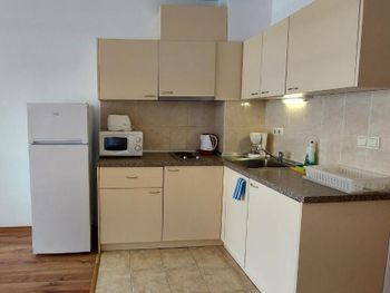 Отдыхала в этом отеле не первый раз. Очень нравится, что отель не большой, нет большого скопления людей. Номера достаточно просторны, есть достаточное количество мебели. Так что можно, как обустроить рабочее место, так и отдыхать в комфорте. Кухня оборудована по минимуму, но есть все необходимое. Сотрудники отеля гостеприимны и любезны. К морю нужно пройтись, но не далеко. Рядом расположены супермаркеты, что очень удобно.